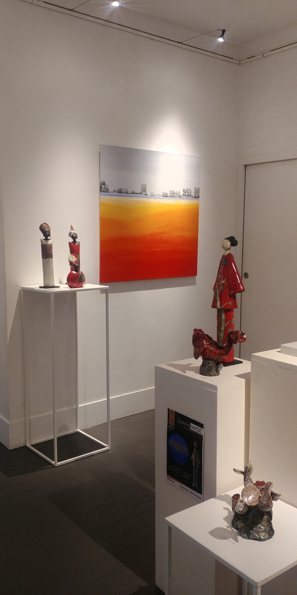 Pour revoir l’expo ou trop loin pour la découvrir, voici quelques photos. Sculptures, Sandrine Sueres et Peintures, Michele Guilloteau. Tous les jours de 11h à 19h à la Galerie Mage, 30 place Mage à Toulouse.